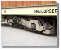 Die Aufnahme zeigt eines der beiden Maximumdrehgestelle mit seinen zwei Achsen.Die jeweils innenliegenden Achsen verleihen dem Fahrzeug ein angenehmes Kurvenverhalten